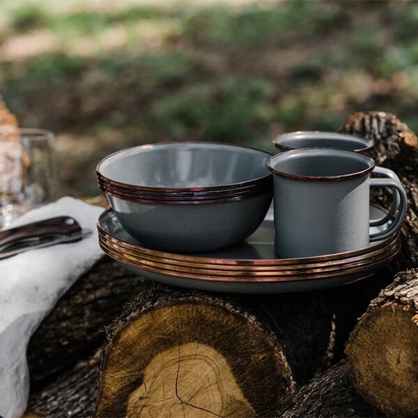 Barebones ベアボーンズ エナメルボウル 2個セットは2個セットになったエナメル製のボウルです。リムはステンレススチールで補強されており、リムの色はアンティーク調のカッパーカラーとなります。